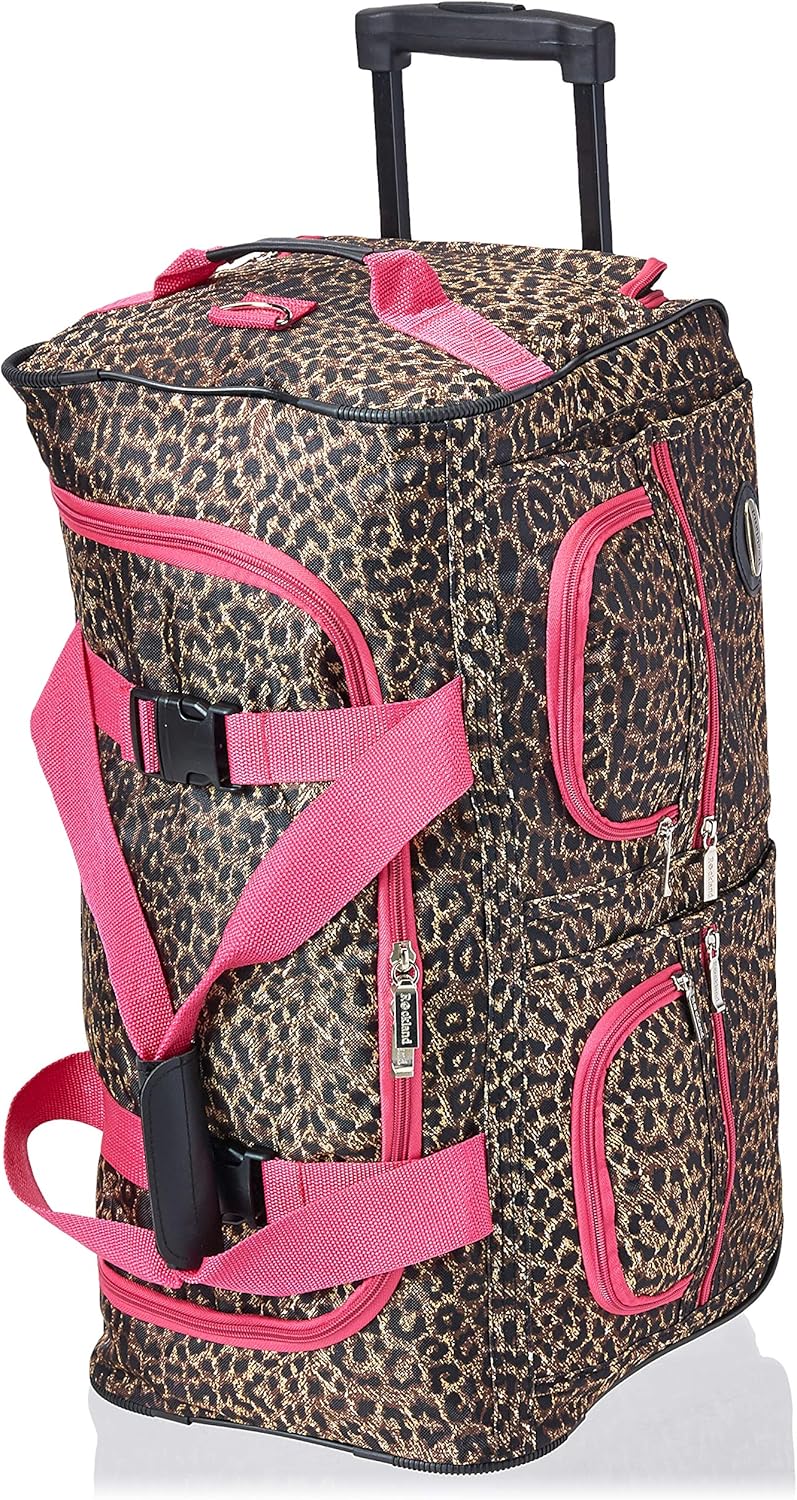 Constructed with high-quality materials, this rolling duffel bag is designed to withstand the rigors of travel. The spacious main compartment provides ample room for all your essentials, while multiple zippered pockets offer convenient storage for smaller items. The retractable handle and smooth-rolling wheels make navigating busy airports and city streets a breeze.